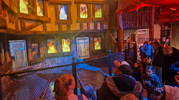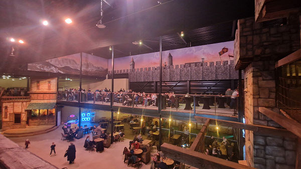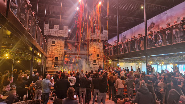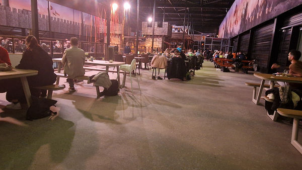 • Het horecadeel is vrij uitgebreid en beslaat bijna de helft van de 2200 m2 oppervlakte van de hal. Er zijn ook veel tafeltjes, want families claimen graag hun eigen plekje. Voor het verdienmodel van het park zijn de horeca en de entree ongeveer even belangrijk.