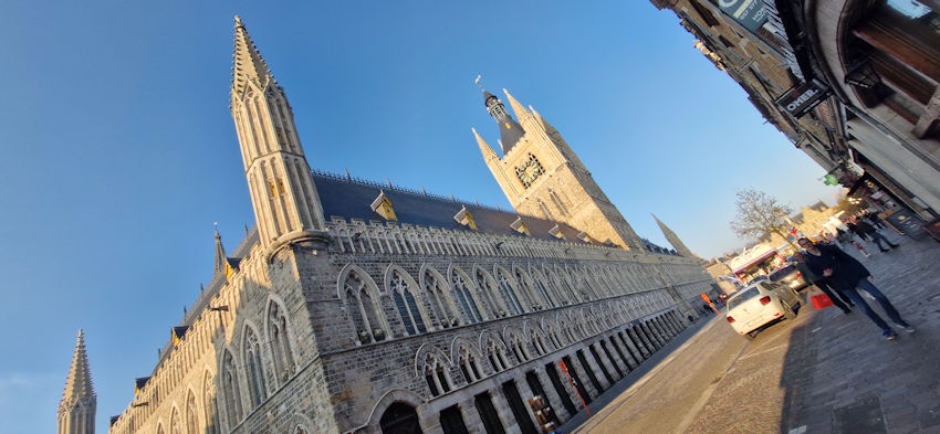 Bij het aanrijden van Ieper verschijnt eerst een middeleeuwse stadsmuur met een bijpassende poort. Direct daarachter volgen charmante middeleeuws ogende gebouwen en huizen. Het asfalt maakt plaats voor kasseien. Het geluid onder de banden, gecombineerd met de gevels langs de route, trekt bezoekers ongemerkt een andere tijd binnen.