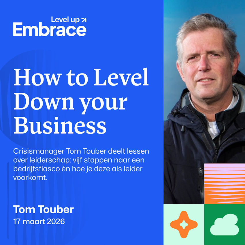 Aan het einde van de dag zorgt crisismanager en interim executive director Tom Touber voor een prikkelende afsluiting. Met zijn keynote ‘How to Level Down your Business’ deelt hij onmisbare lessen over besluitvorming en
