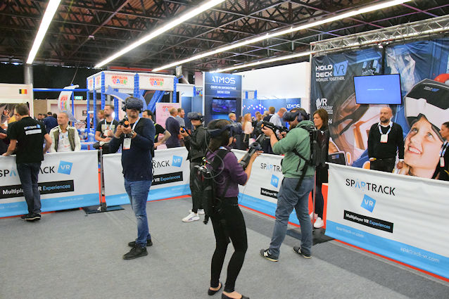 Het bedrijf Breeze Creatieve heeft zich helemaal toegelegd op nieuwe technologie-toepassingen voor de recreatiesector. Op hun stand zijn vooral veel Augmented Reality toepassingen te vinden, waarbij een virtuele laag een de werkelijkheid wordt toegevoegd. In tegenstelling tot VR is er voor deze techniek geen lastige VR-bril nodig. OP deze show introduceert Breeze voor het eerst de ‘head tracker’. Een slimme camera detecteert een hoofd en vormt deze om. Op de foto hiernaast werd mijn hoofd veranderd in een halloween-pompoen. Deze toepassing heeft vooral een hoge gadget-factor.