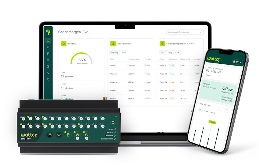 “Centraal staat daarbij; meten is weten.” legt Rob Schoonings van Wattcy uit. Door de toenemende consumptie van energie en toegenomen energieprijzen is het betalen per gebruik inmiddels gemeengoed geworden in de verblijfsrecreatie. Tot nu toe werden energiesystemen vooral ingezet om precies bij te houden hoeveel stroom een gast of passant afneemt. Bij geavanceerdere systemen (ook van Wattcy) verloopt ook de afrekening volledig automatisch. Gasten kunnen zelf het gewenste amperage kiezen, waarna het systeem zich automatisch aanpast. Door bediening via een app of koppelingen met bestaande reserveringssystemen, hebben medewerkers er nauwelijks nog werk aan.