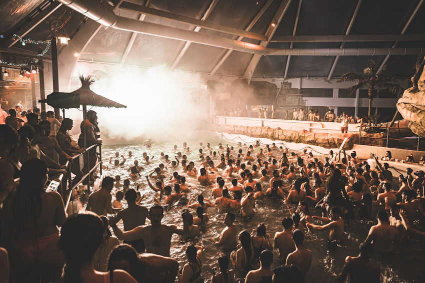 Tijdens de Wave Party’s wordt het podium tegenover het golfslagbad opgesteld, waardoor het hart van Aqualibi verandert in een aquatische dansvloer.