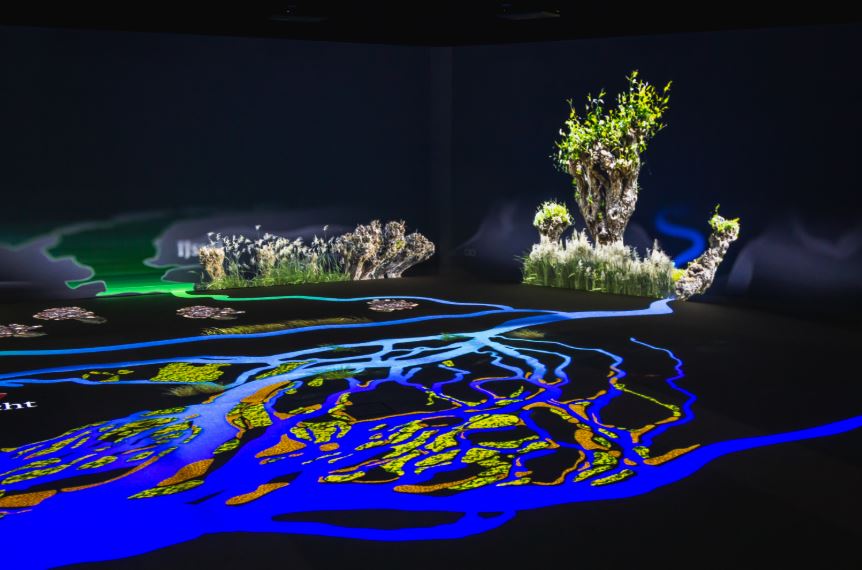 In het tweede paviljoen stappen de bezoekers in een immersieve beleving, waarin Nationaal Park De Biesbosch als Moedernatuur het woord voert en de bezoekers meeneemt in een visueel spektakel. Langs de waterstromen van de Biesbosch en de uitdagingen waar het natuurgebied de afgelopen eeuwen mee te maken heeft gehad. “Hier werpen we een blik op de toekomst: wat betekent klimaatverandering en wat kunnen wij als mens doen om het gebied te beschermen? We hopen bezoekers te inspireren om met andere ogen naar klimaatverandering te kijken en de gevolgen voor de natuur te begrijpen,” aldus Van Beek.