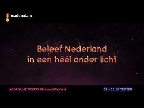 “VONK18 is een avondvullend programma voor jong en oud en staat volledig in het teken van ‘samen terugblikken, samen vooruitkijken’. Laat je betoveren door bijzondere lichteffecten, muziek én volop entertainment. Zo zag je Nederland nog nóóit!”
