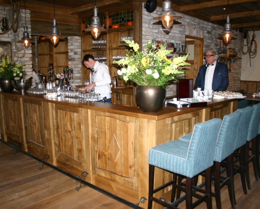 * Een groot en toch sfeervol restaurant. Sfeervol door de donkerbruine kleur en de zeemansattributen aan de muur. Verder vallen de oud-Hollandse panden en gevels op die op miniatuurbasis zijn nagemaakt dan wel weergegeven op de muur die je ziet wanneer je het restaurant binnen loopt. Ook de toiletgroepen zijn ruim van opzet waarbij de deuren wederom in eiken zijn uitgevoerd. Verder kijk je vanuit de grote ramen uit op het terras en de jachthaven.
