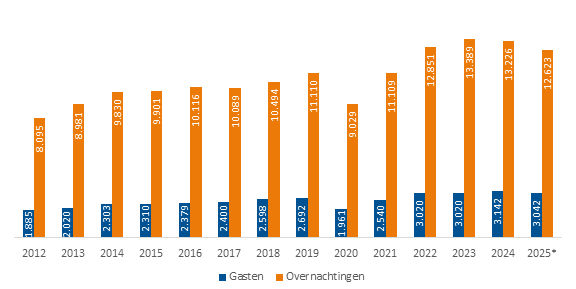 In 2025 kwamen ruim 3 miljoen toeristen naar Zeeland voor een vakantie of zakelijk verblijf, een daling van 3% ten opzichte van 2024. Dit is, met uitzondering van het coronajaar 2020, de eerste daling in het aantal gasten sinds de start van de trendreeks in 2012. In totaal verbleven gasten 12,6 miljoen nachten in de provincie in 2025, een daling van 5%, na een daling van 1% een jaar eerder.
